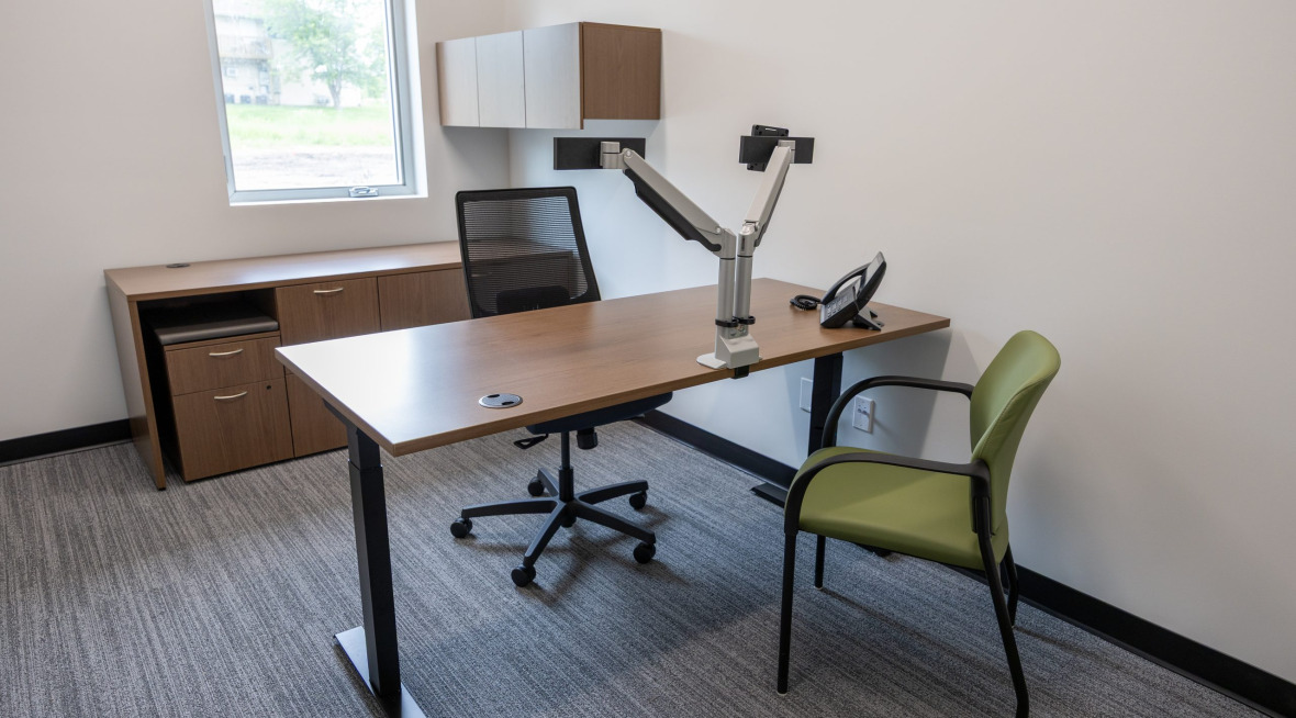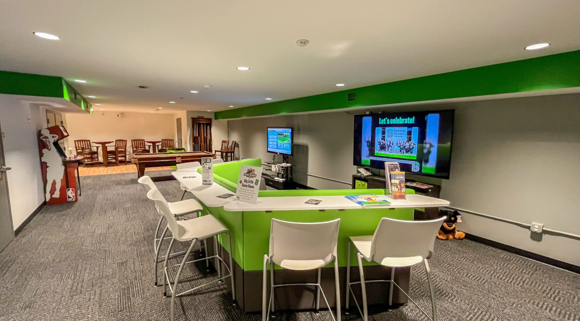 Description: Big Brothers Big Sisters of Central Iowa relocated to a new 9,800-square-foot Youth Mentoring Center in Des Moines, transforming a former multi-tenant office building into a purpose-driven space. The renovation was designed from the ground up to support the organization’s mission, with the top floor dedicated to offices and open workstations featuring ergonomic furniture for staff comfort. The main floor includes a large conference room equipped with collaborative furniture and technology, along with welcoming gathering areas for mentors and mentees. The basement was reimagined as a vibrant game room, creating an engaging and relaxed environment for youth activities.